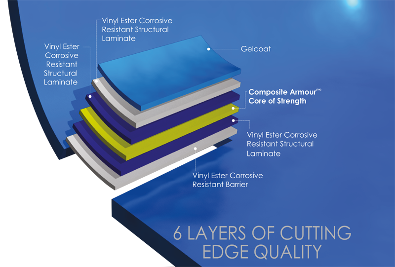 By using Composite Armour™ in the pool shell laminate, Leisure Pools has been able to achieve tremendous improvement in flexural and tensile strength compared with normally constructed fibreglass pools.